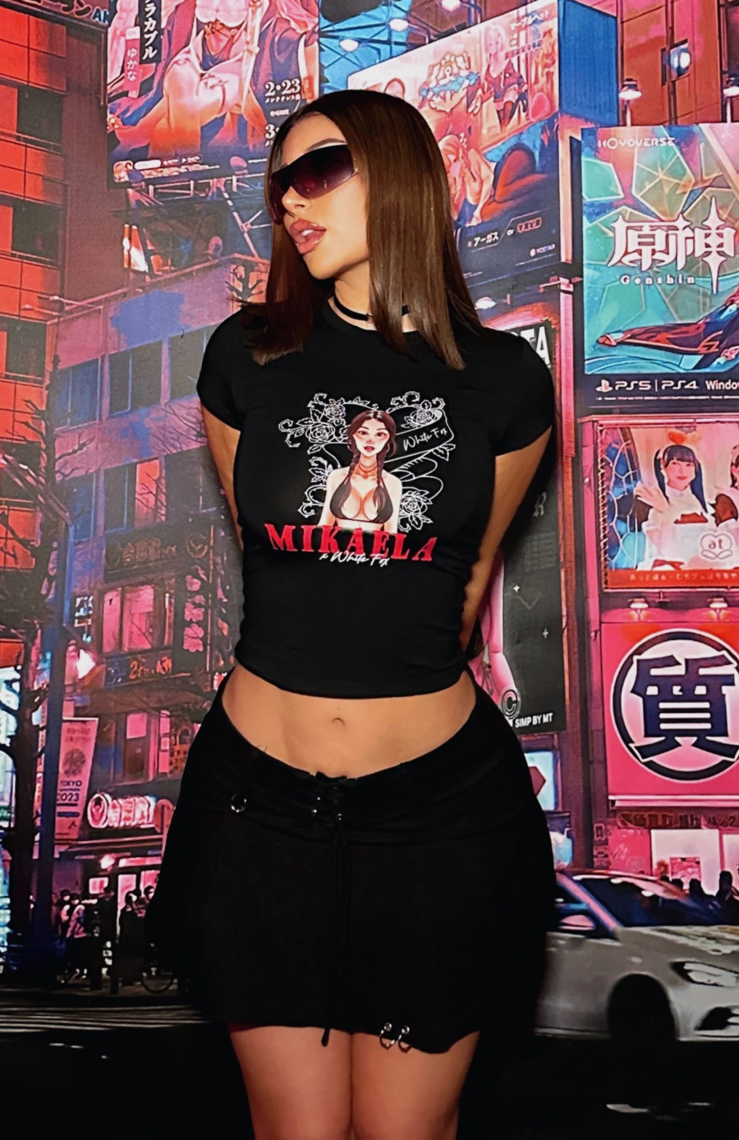 Be the moment in the Anime Mik Baby Tee Black. Features short sleeves, printed logo centre front, fitted and soft stretch fabric. Pair with your favourite White Fox Jeans to complete the look. We’re obsessed.