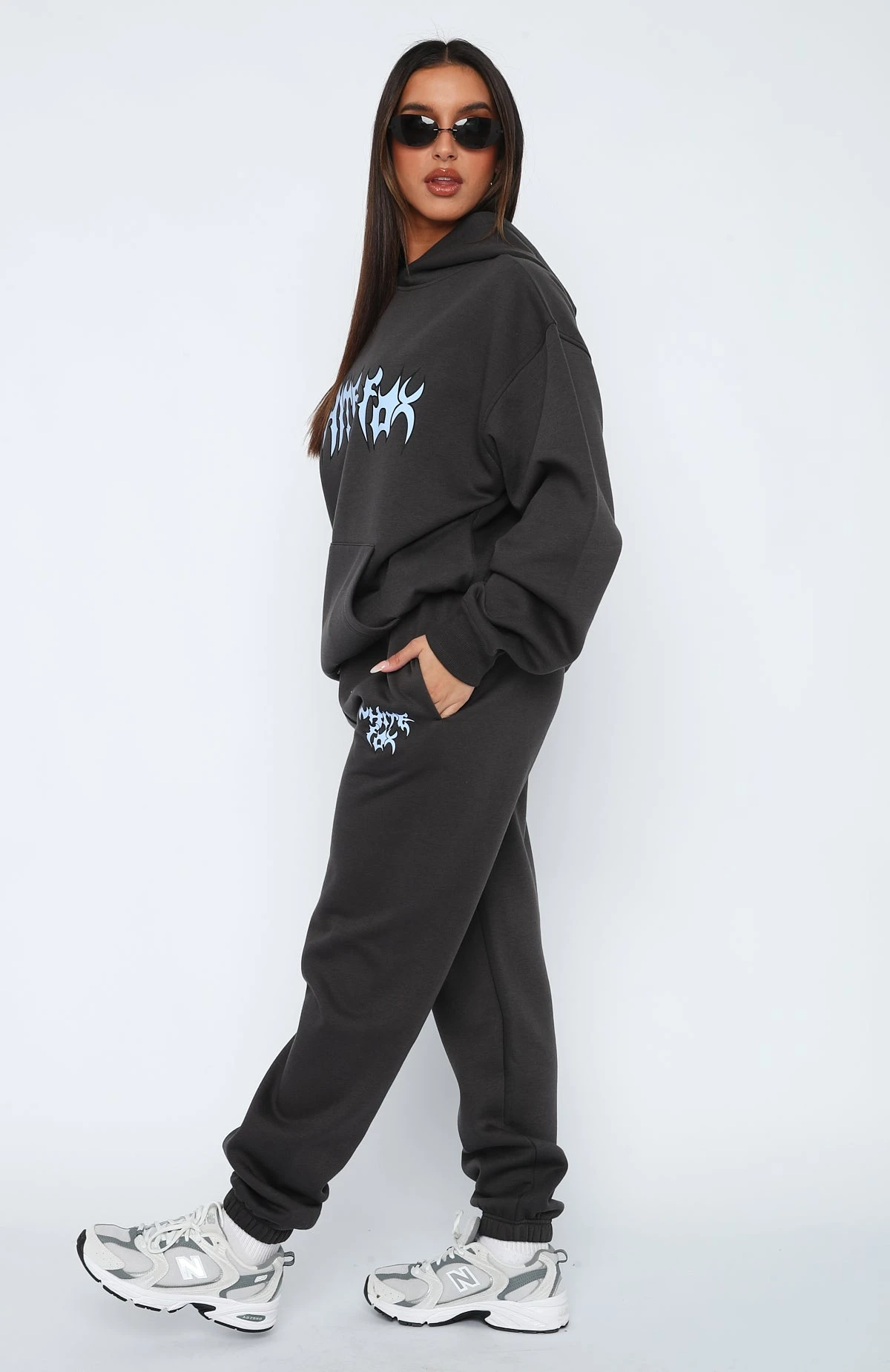 Style meets comfort with the Bring That Energy Sweatpants in Charcoal. Featuring a high elasticated drawstring waistband, elasticated ankles, side pockets, soft fleece fabric for extra comfort and printed logo on side of leg. Complete the set with the matching Bring That Energy Oversized Tee or Bring That Energy Oversized Hoodie for the perfect off-duty look!