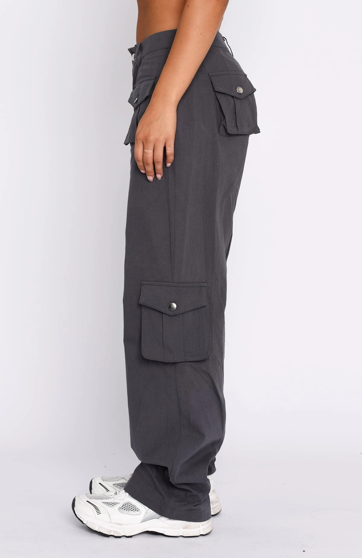 Channel everyday street style in the Clear My Mind Cargo Pants in Charcoal. Featuring a cargo design and a straight leg fit, belt loops, button/zip closure and front and back pockets. Complete the look with a cute crop and sneakers for a look we love!