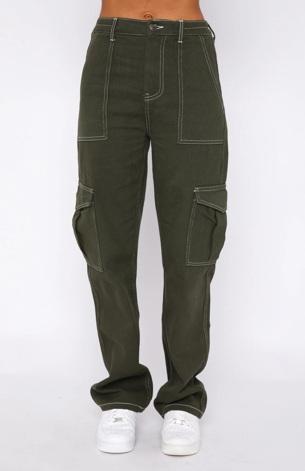 The coolest new fit the Keep On Moving Jeans in Khaki. They are a mid rise relaxed fit with contrast stitching, 5 belt loops and side & back pockets. Style yours with sneakers and a crop.