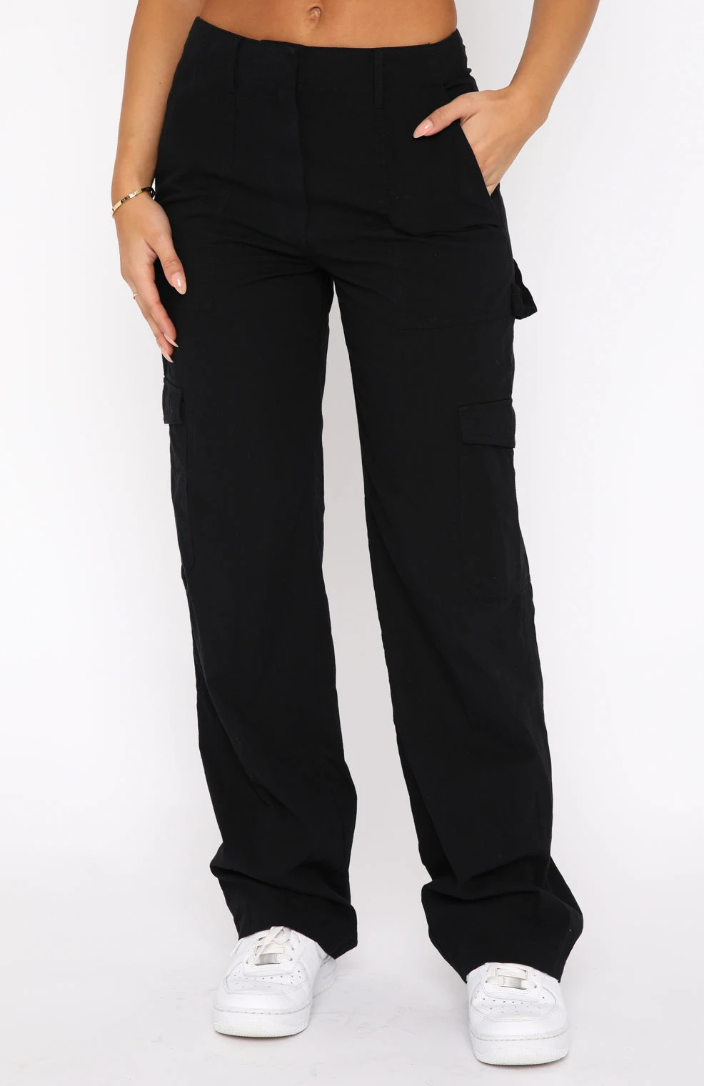 Upgrade your go-to everyday outfit with the Know Your Worth Cargo Pants in Black. Featuring a cargo design and a wide leg fit, belt loops, button/zip closure and side pocket design on legs. Complete the look with a bustier and sneakers for a super cute look.