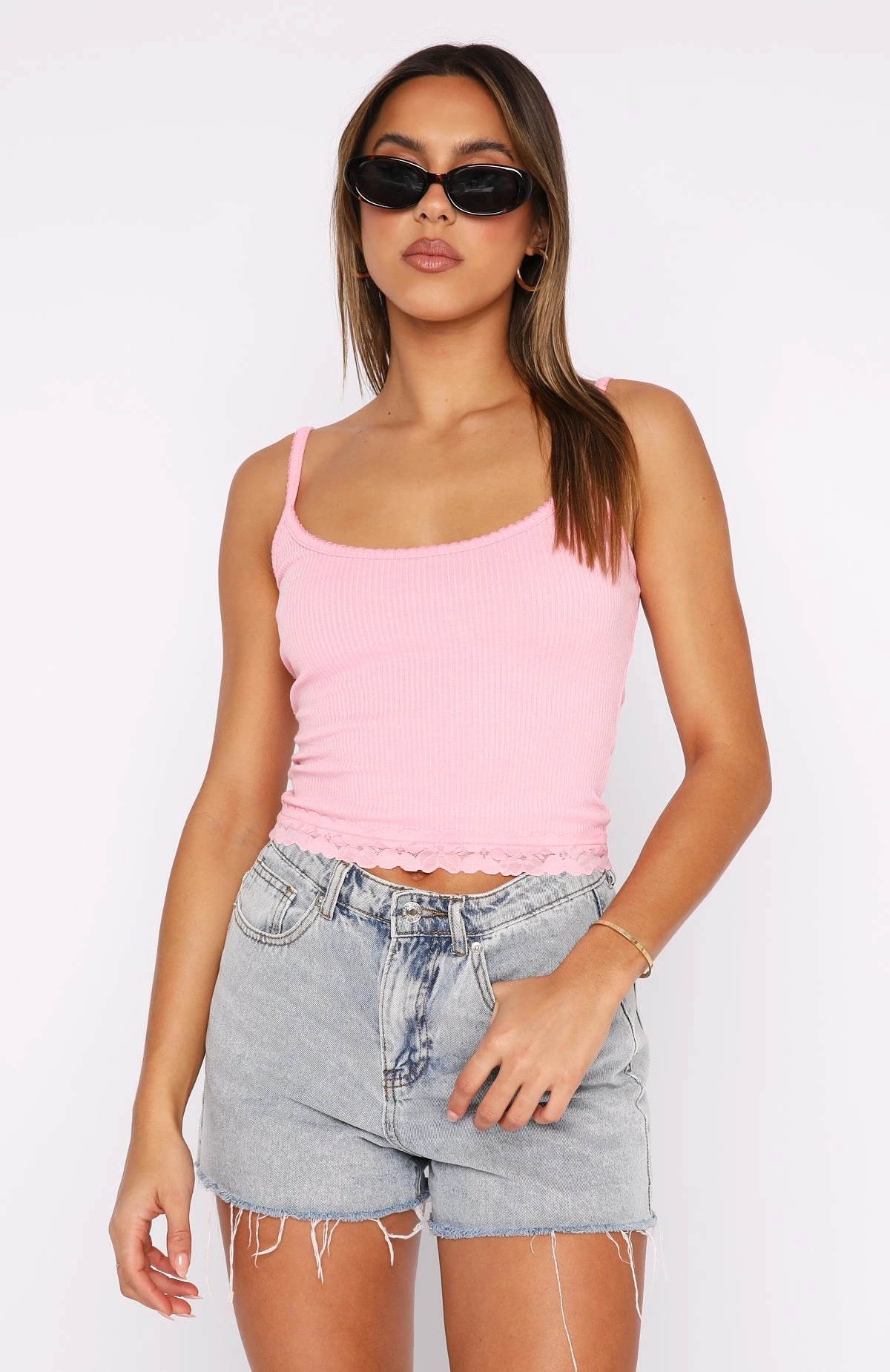 Introducing the cutest top you’ll ever know. The Make It A Date Ribbed Top Bubblegum features thin straps, lace trim, ribbed fabric and soft, stretch fabric. Complete the look with cargo pants and sneakers for the perfect off-duty look!