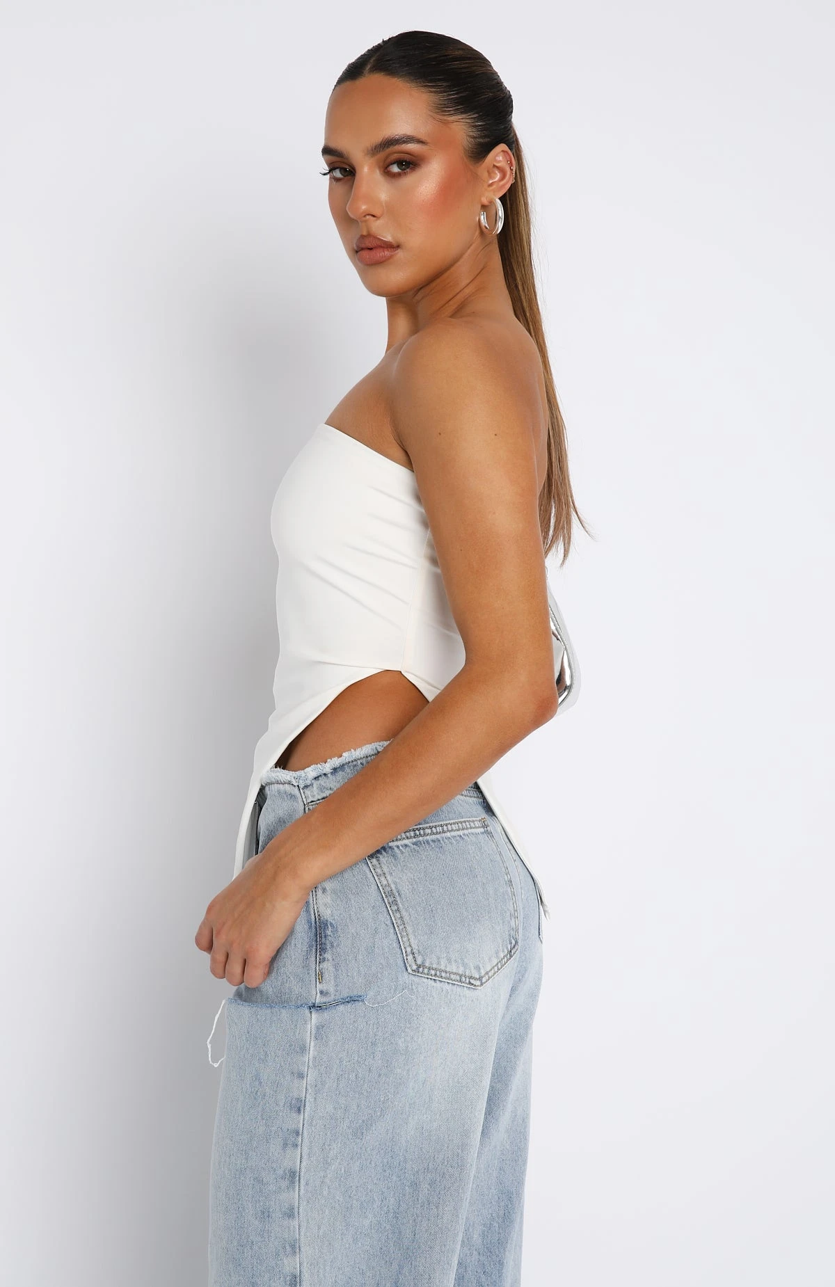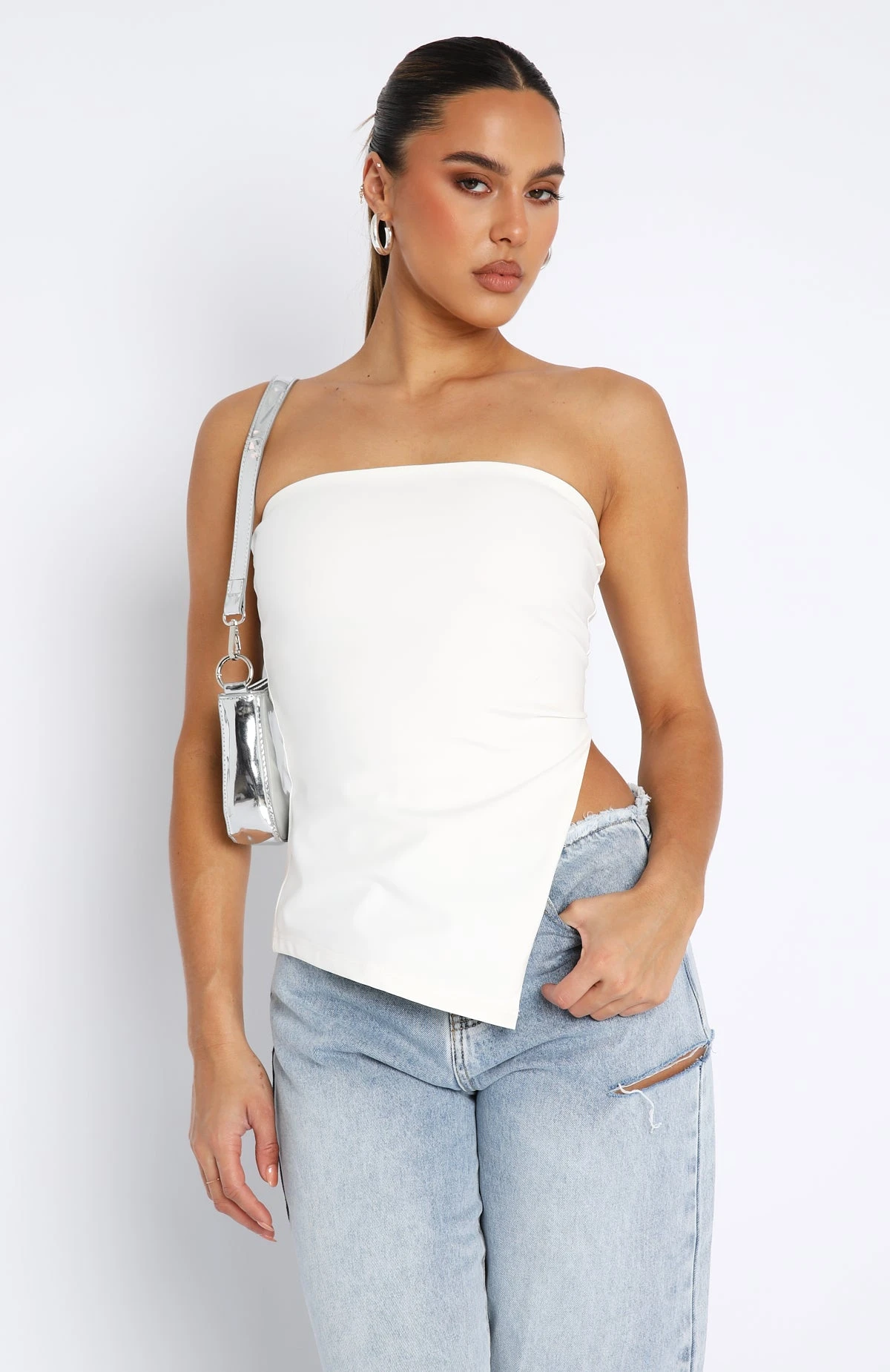 It’s the perfect blend of comfort and style — slip it on for a day at the office, then dinner and drinks. The One More Night Strapless Top White features a strapless fit, grip tape, asymmetric side split design, mesh lined fabric and semi cropped length.