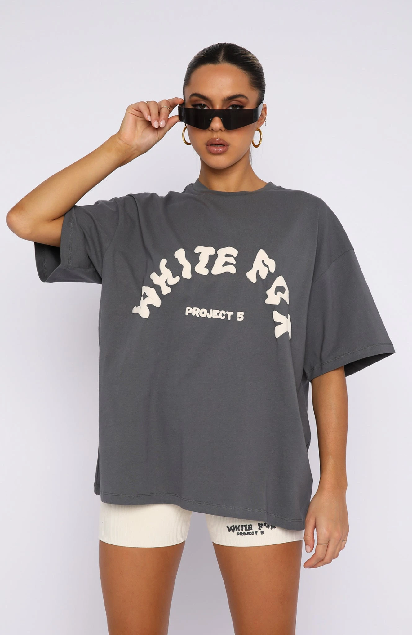 Switch up your stay at home look with the Project 5 Oversized Tee in Volcanic. It is an oversized fit with slouch shoulders, round neckline, and a puff print logo centre front. We love this paired with one of the Project 5 bottoms and sneakers for the perfect off-duty look.