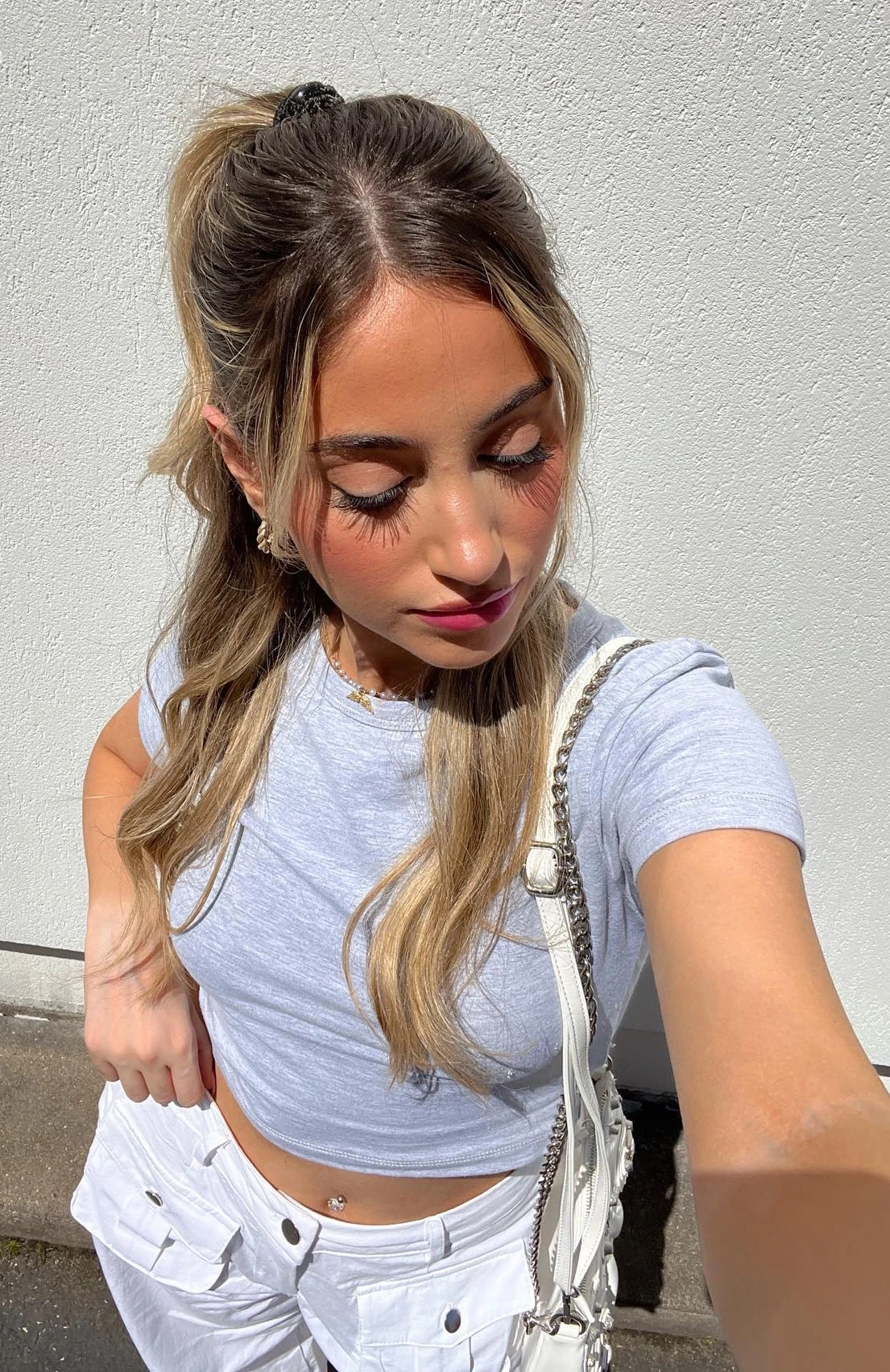You can never have too many basic crops in your wardrobe, so why not add the Switching Sides Crop in Grey Marle to your collection. This cropped top has a high scooped neckline, shorts sleeves and soft stretch fabric. Complete the look with your favourite jeans and sneakers for a chic everyday look.