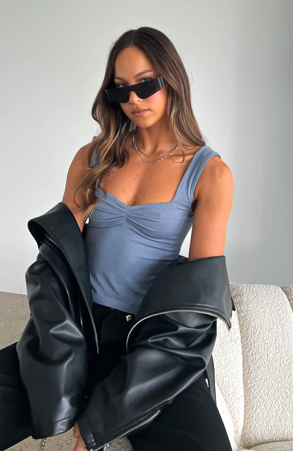 Feel stunning in our Taking Off Top in Steel. Featuring thick straps, low neckline and cut-out side detail. We love this top paired with cargo pants and heels for a super chic look.