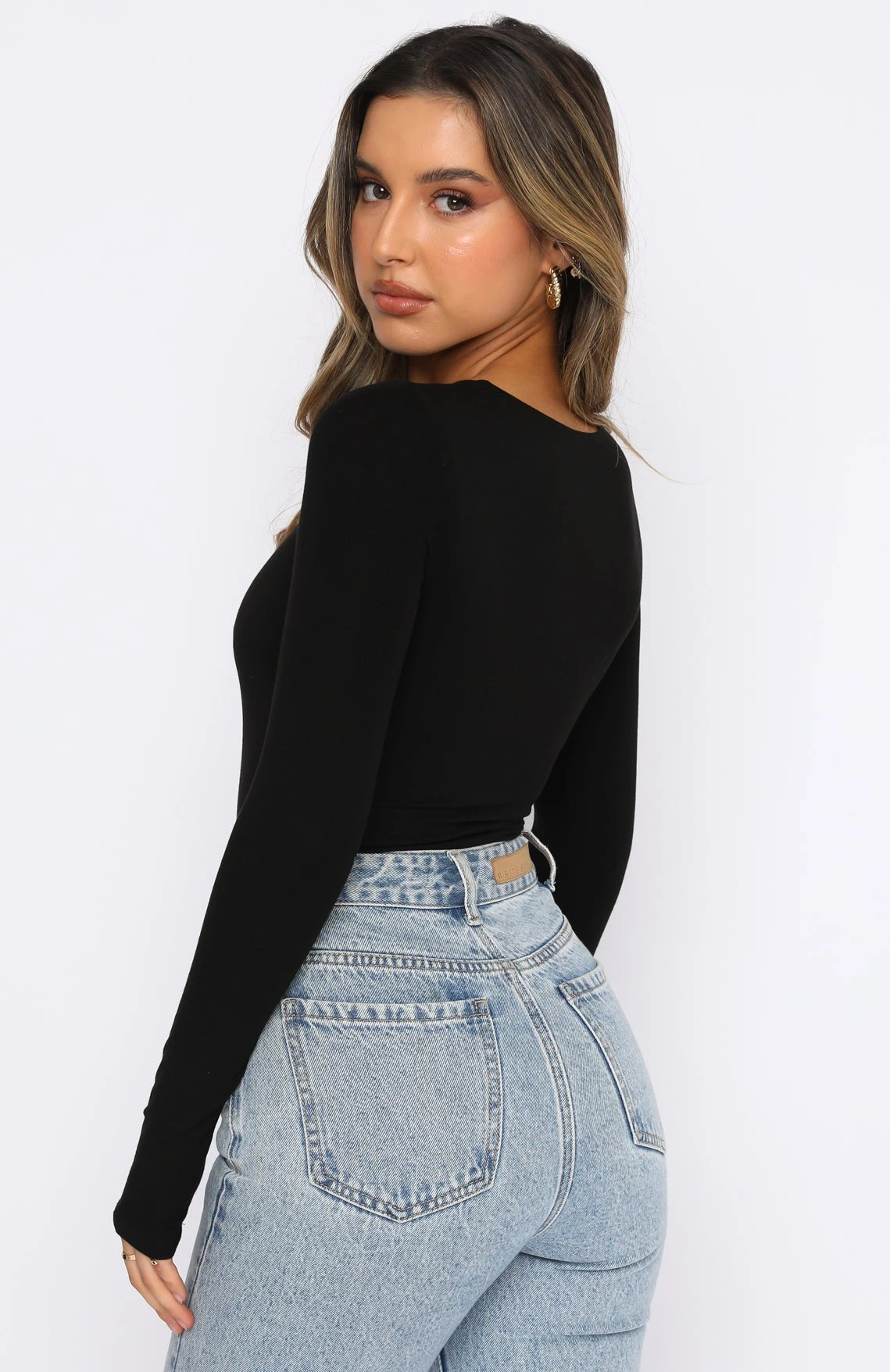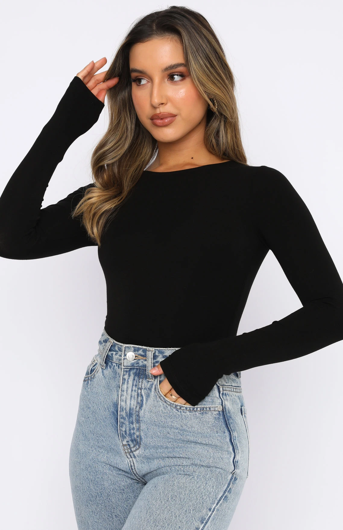 The Come Back Long Sleeve Bodysuit in Black is about to be your go-to for every outfit. This fitted long sleeve ribbed bodysuit has a high neckline, cheeky cut design, snap closure at crotch, and stretch fabric. Complete the look with jeans and heels for your new everyday look.