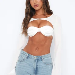 You’ll be wearing this top on rotation during your next summer vacay. The When You Know Long Sleeve Crochet Top White features long sleeves, tie-up front, plunge neckline and crochet fabric. Pair with a platform slide and your go-to sunnies for a summer ready look!