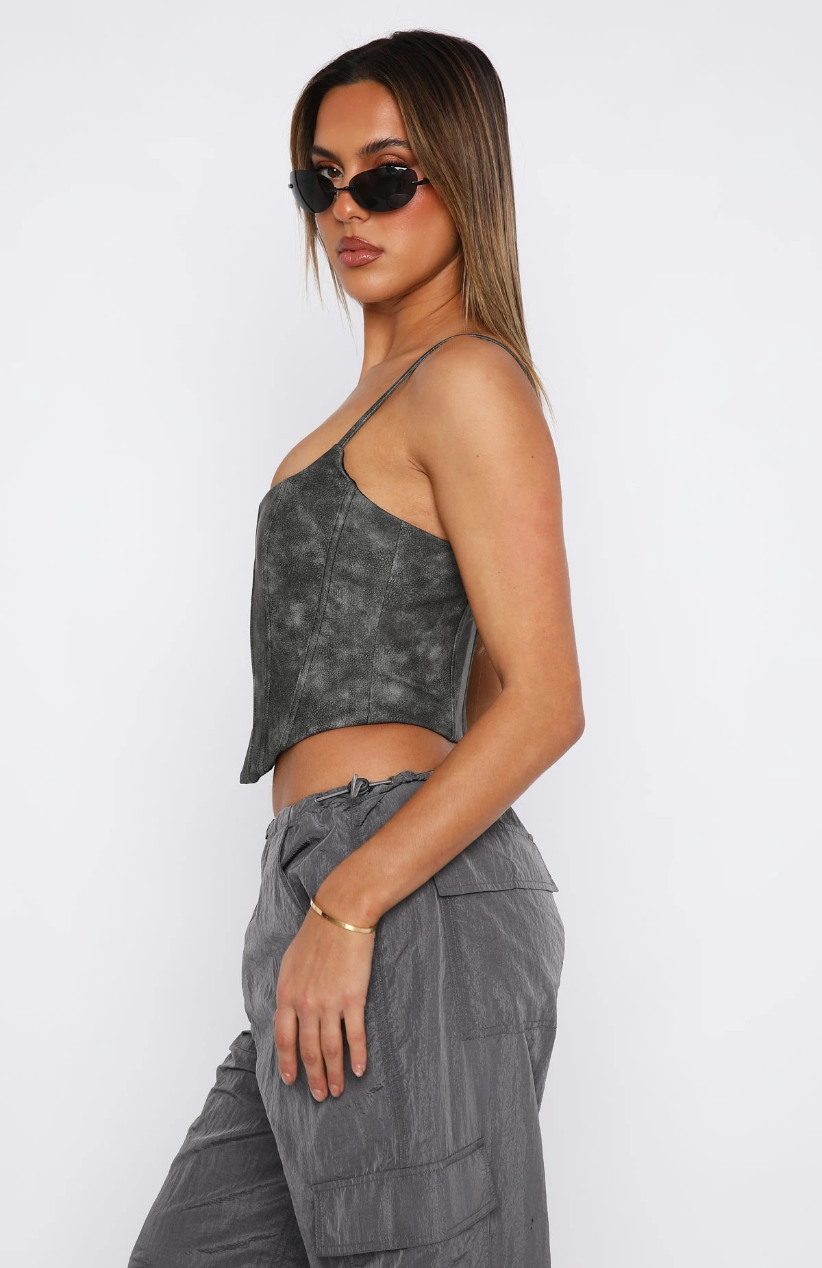 We’re giving summer vacation vibes with the Wonderwall Bustier Charcoal. Featuring thin, adjustable straps, boning in bodice, zipper centre back and lined fabric. Slip into this bustier and pair it with you favourite White Fox jeans and slides for a casual day out.